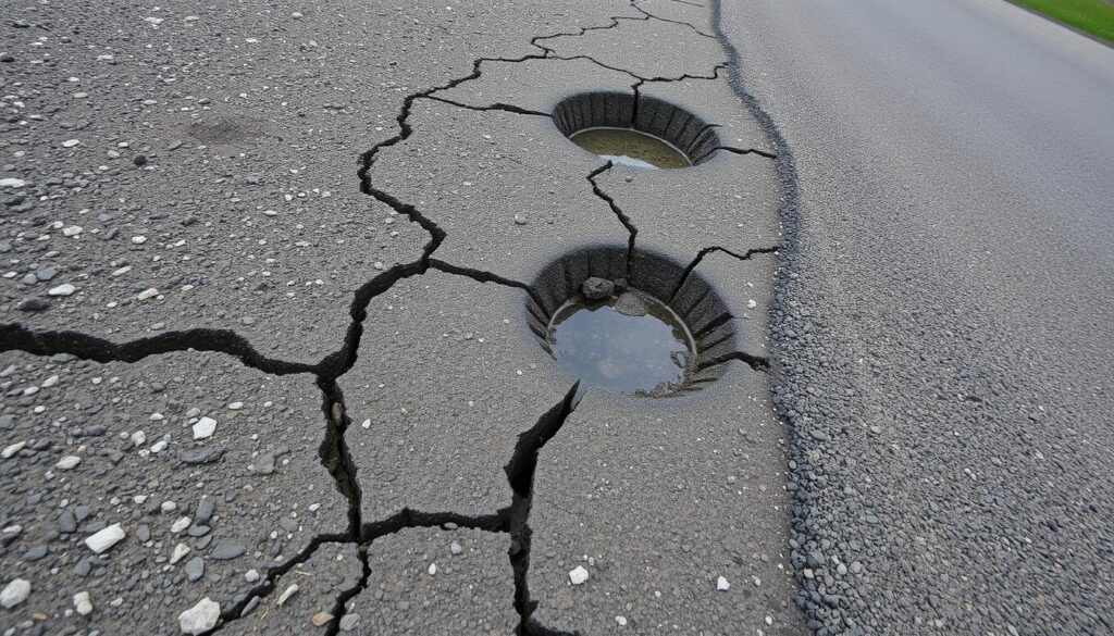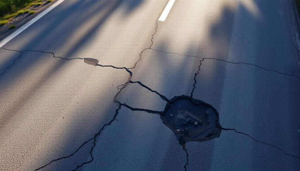 Ignoring potholes can lead to serious car damage. Hitting a pothole can damage tires in over 20% of cases, costing $300 to $4,000 to fix. Not fixing them can also cause accidents, leading to around 1,100 deaths a year. So, it’s key to fix potholes quickly to keep roads safe.