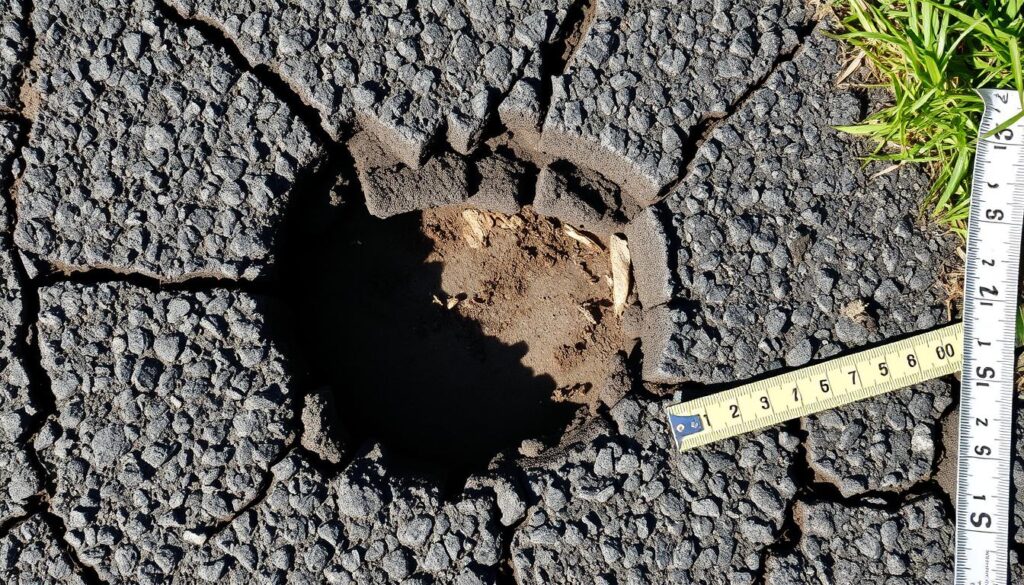When fixing potholes, safety is key. It’s important to protect yourself and others. Using the right gear and controlling traffic can prevent accidents and injuries.