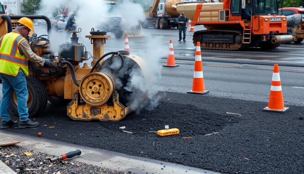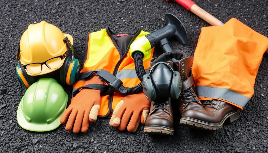 Wearing the right protective gear is key for asphalt removal safety. Each piece of equipment helps protect against hazards. Following safety rules ensures everyone’s safety and meets legal standards.